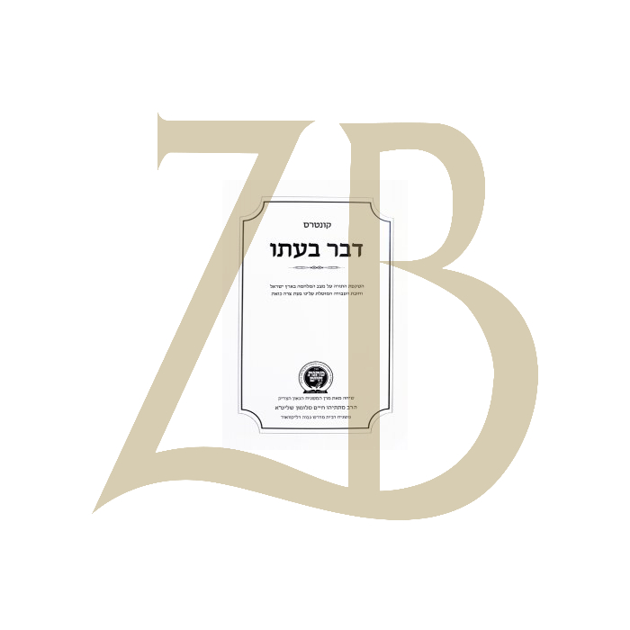 Write a Reviewמתנת חיים - דבר בעתו - כ"ר