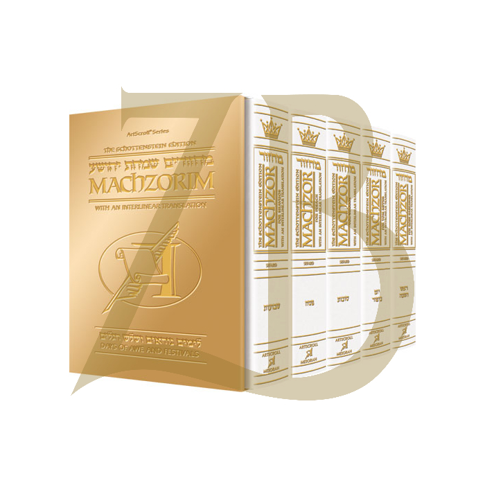 Interlinear Machzor 5 Vol. Set - Sefard White Leather