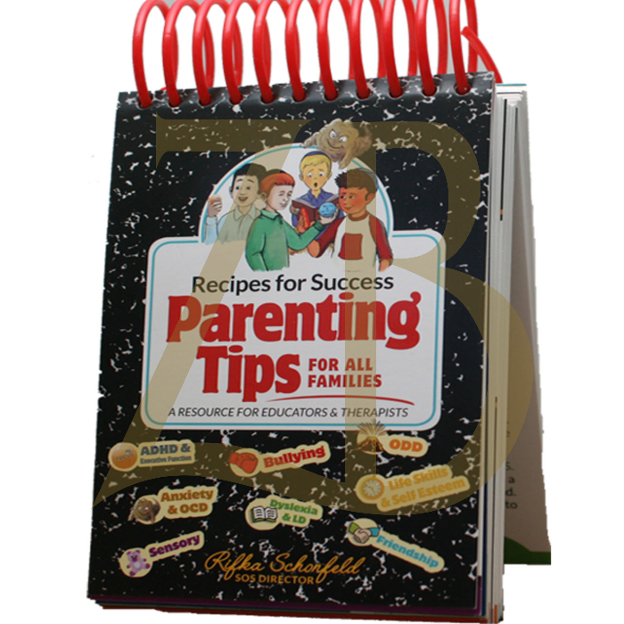 Recipes for Successis a collection of useful and creative tips for all types of children, arranged in a handy pocket-size spiral bound set of cards. The colorful cards and entertaining acronyms help parents remember the different steps to success. Parents can pull one tip a day, or look in specific categories based on their child's needs. The categories include: